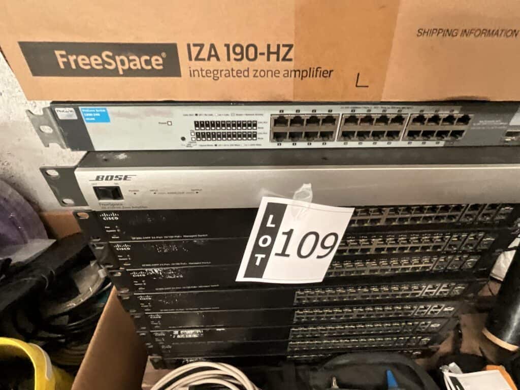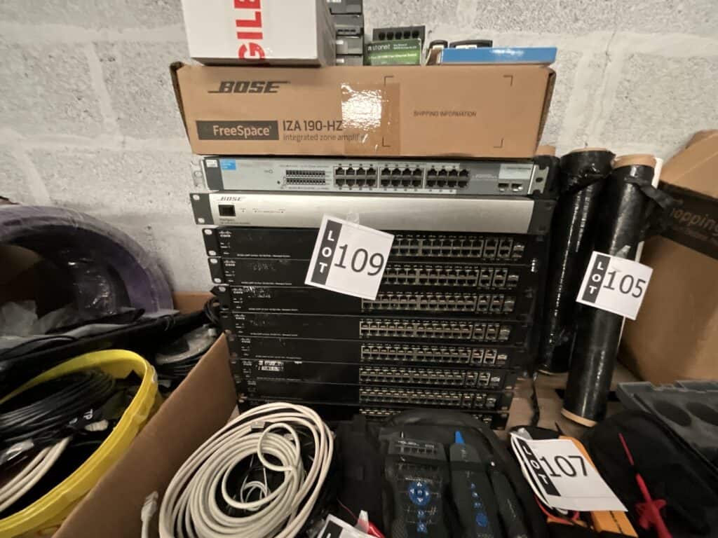 8 routeurs CISCO, disques dur 500GB, Amplificateur BOSE free Space ZA 2120-HZ, Amplificateur BOSE IZA 190 HZ, Switch ethernet, Beikell Adaptateur, Carte réseau