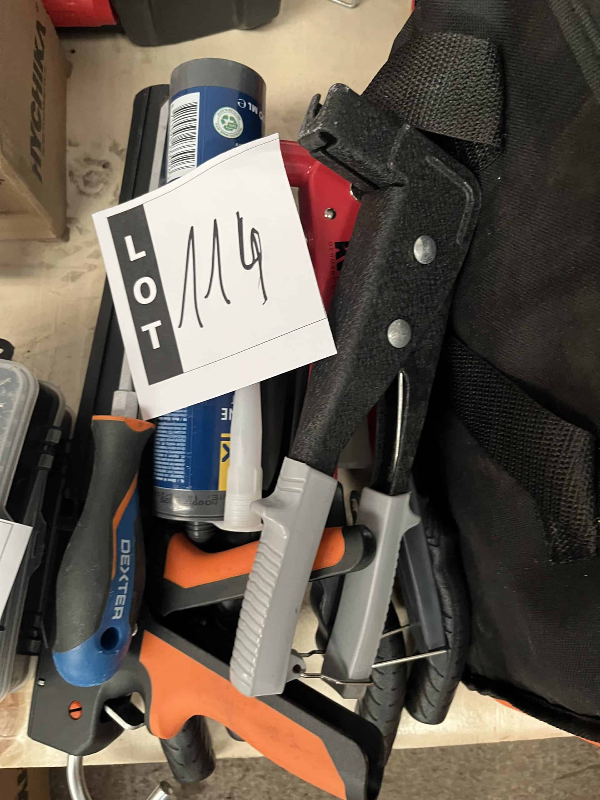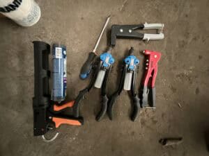 Pistolet à mastique avec une cartouche de mastic, un tournevis, 1 pince à riveter (kwb), 2 pinces à riveter (akktol), 1 pince à riveter