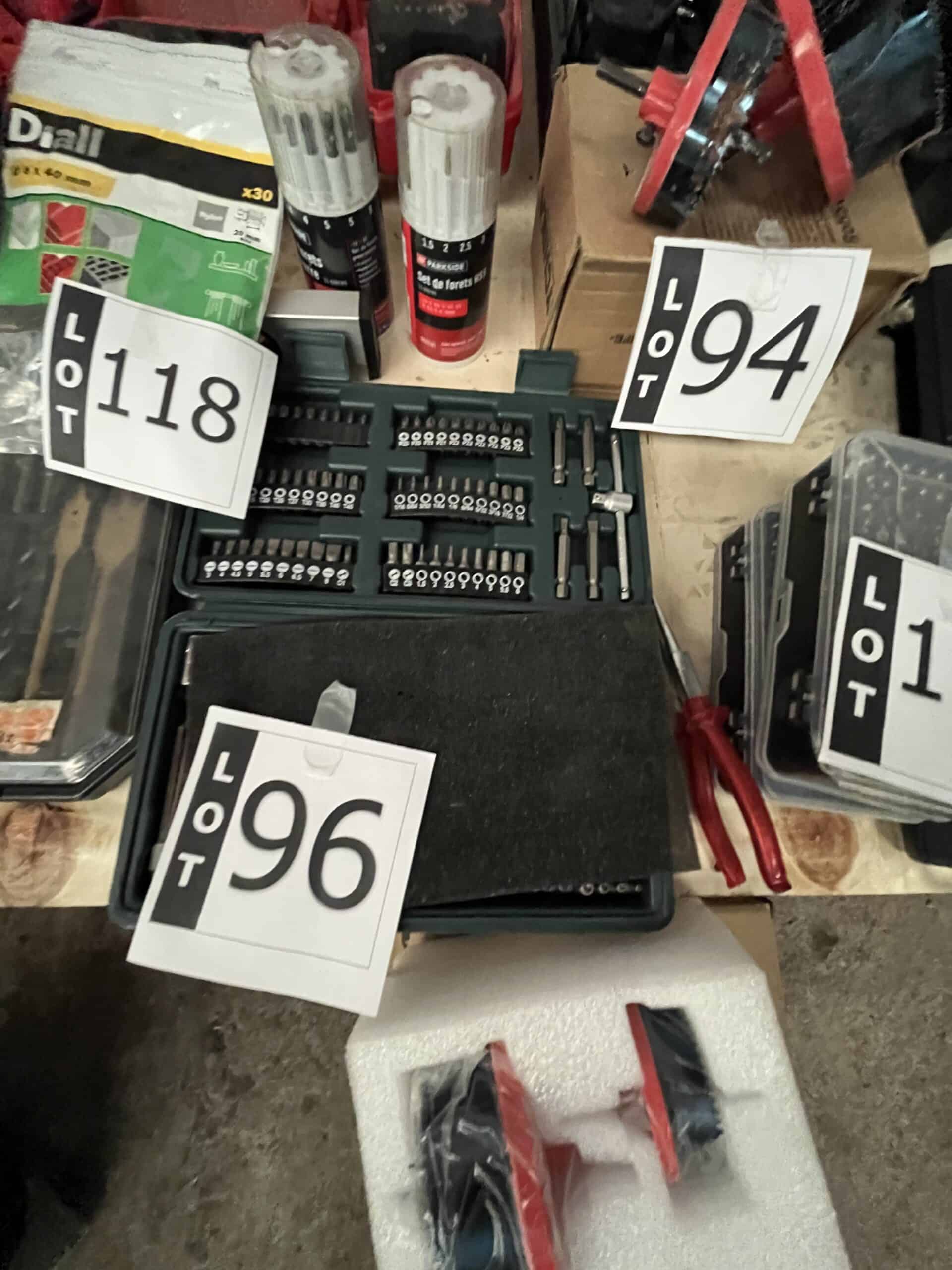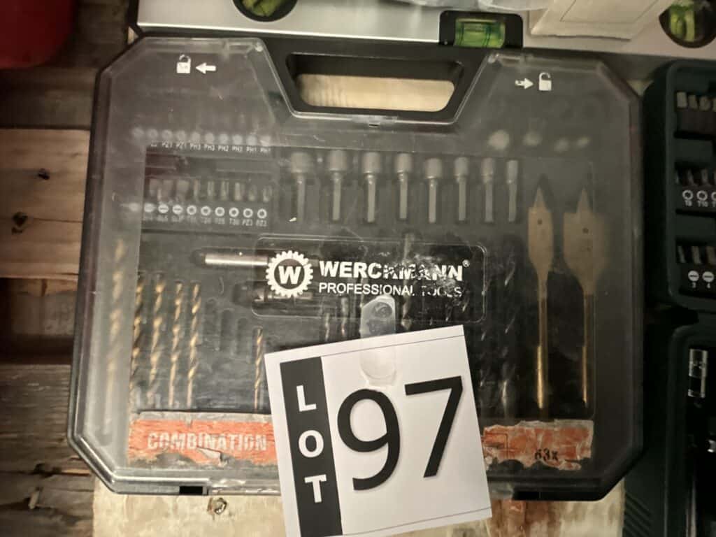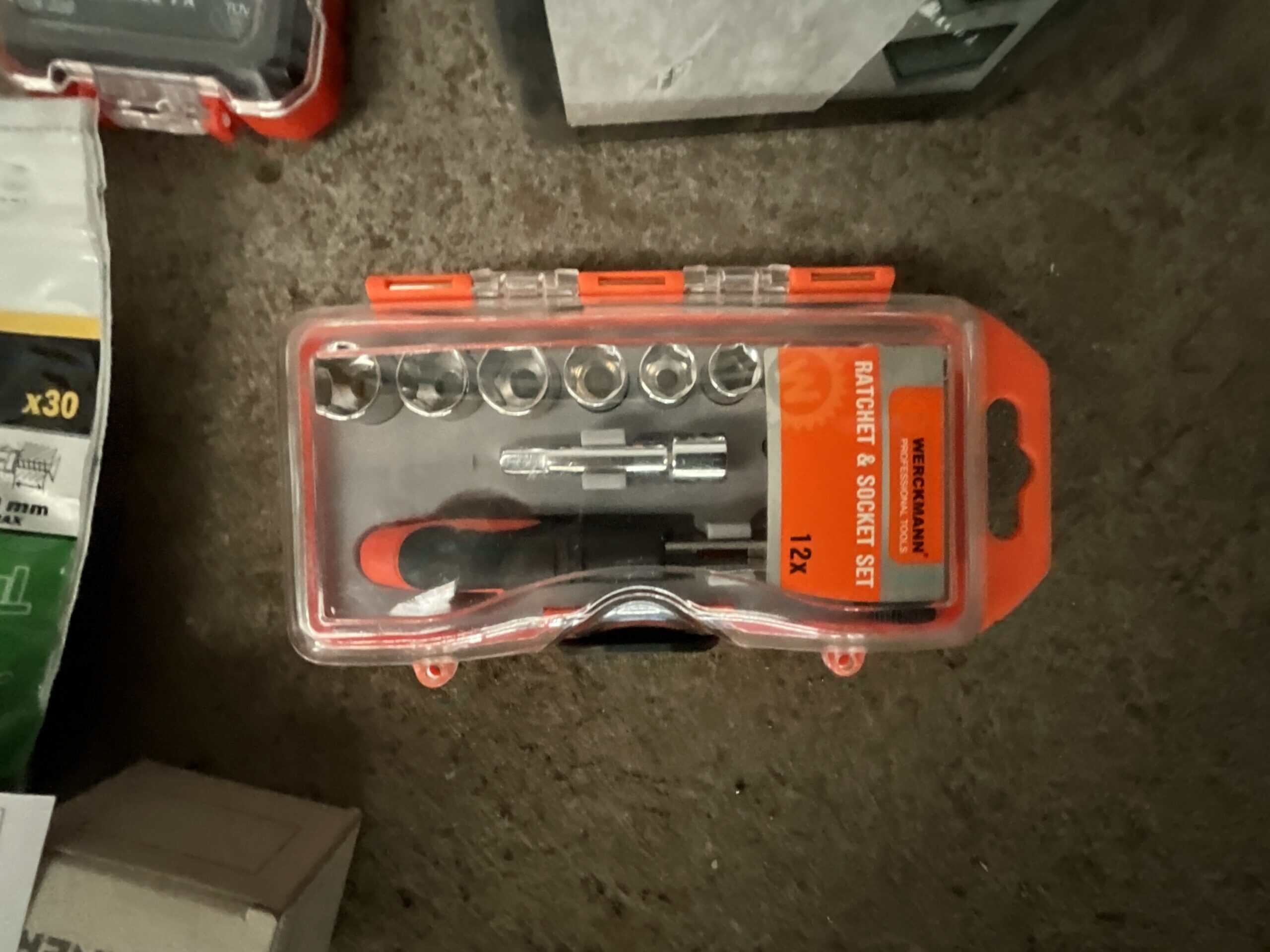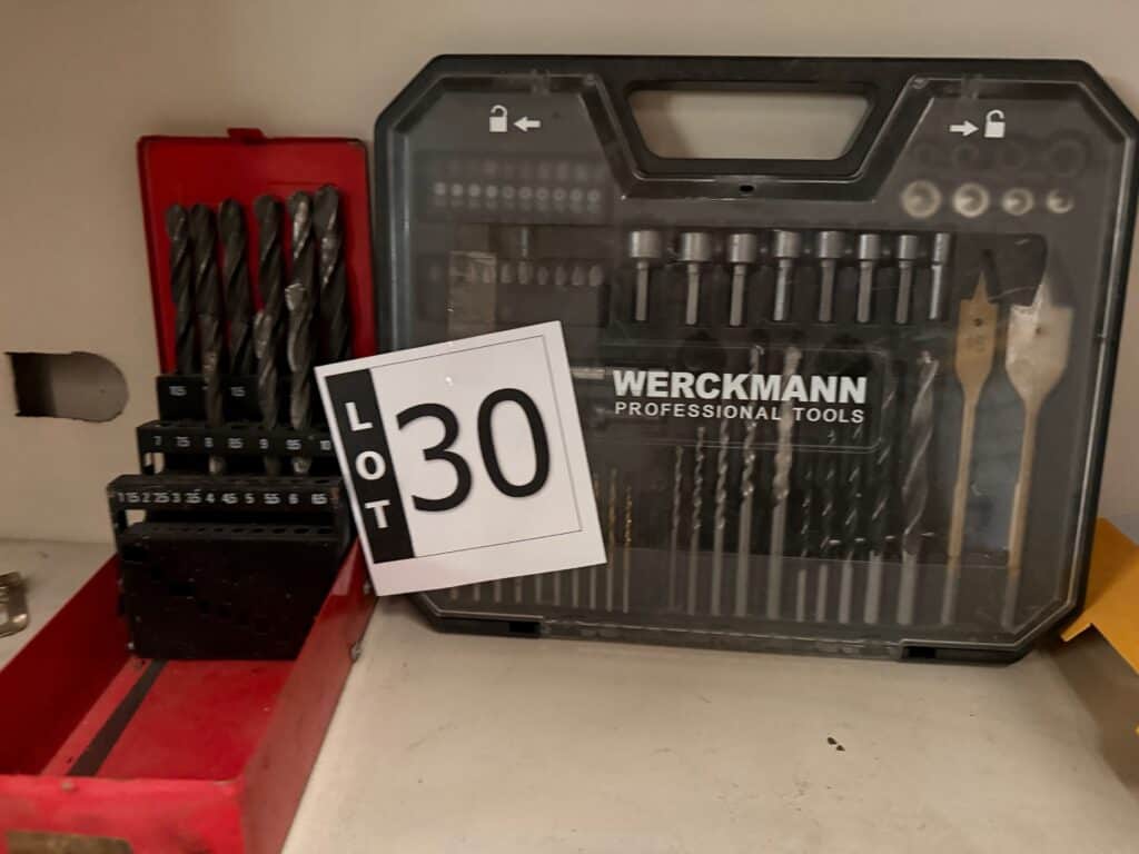 Lot de vis, Jeu de 12 cliquets et douilles (Werckmann), set jeu de forets X7, jeu de forets Parkside X2