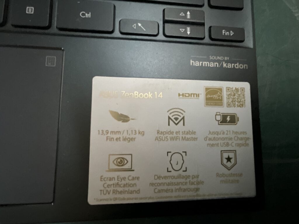 PC Portable Zenbook 14 ASUS PRO BX425EA-BM102R I7-1165G7/32/512/14FHD/W10, date d'achat le 22/11/2021