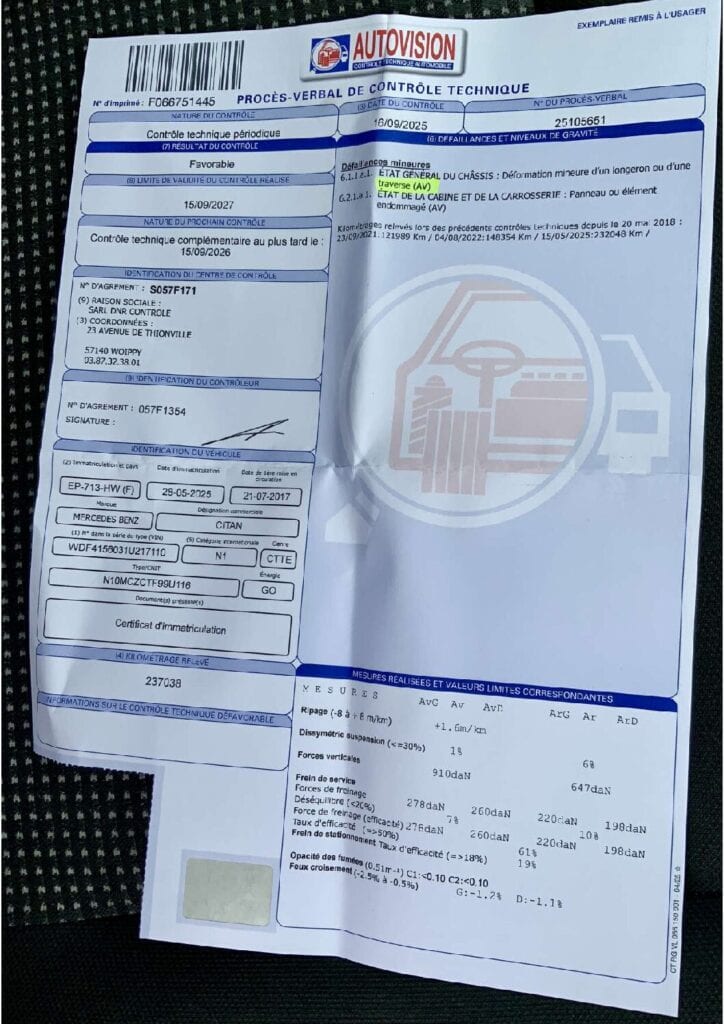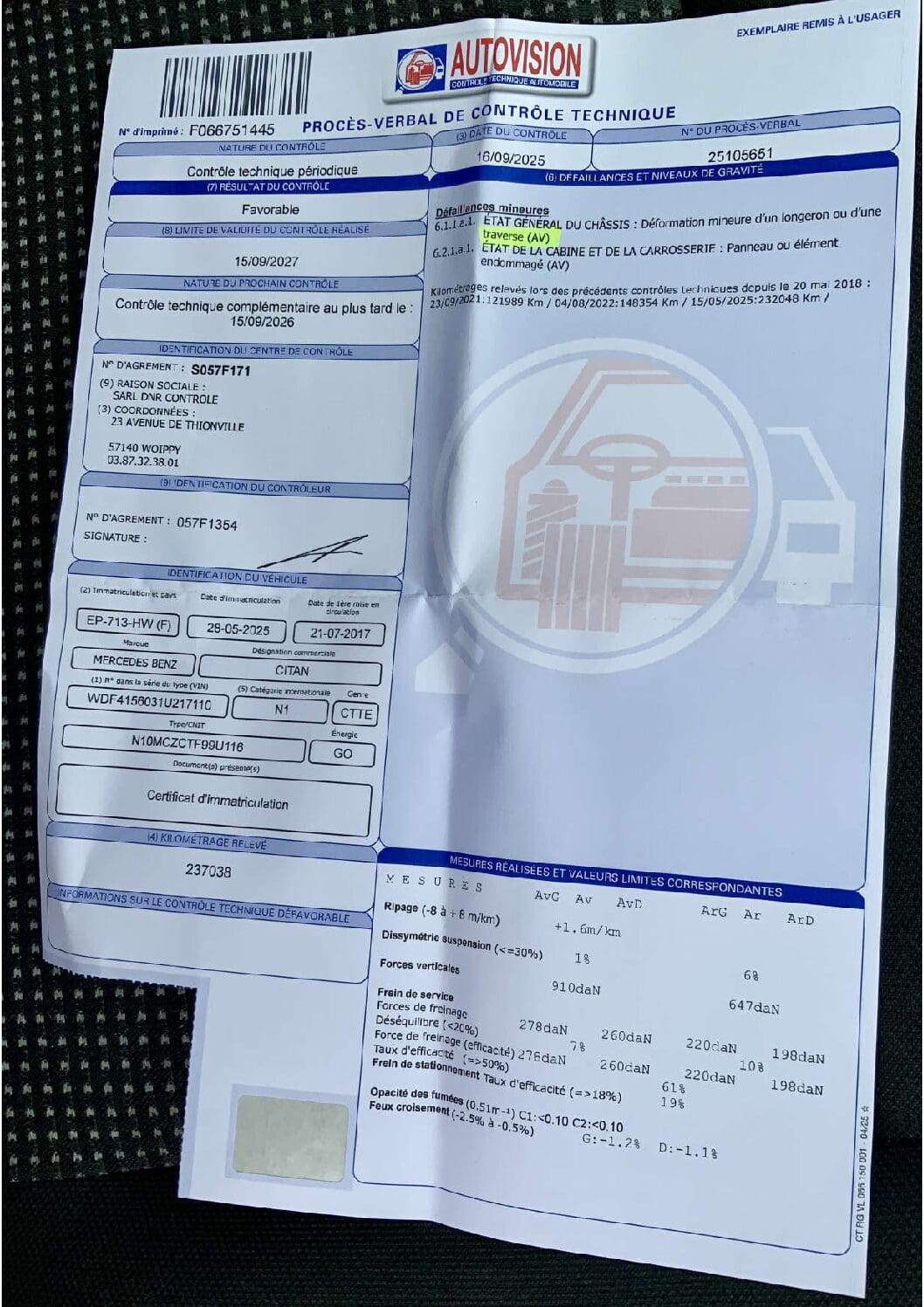 MERCEDES-BENZ Citan, immatriculé EP-713-HW,(415) VU 111 Blue EFFICIENCY 1.5CDI Fourgon moyen A2-1950KG S&S 109 cv, 240 867 KM, DMEC 21/07/2017