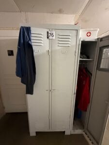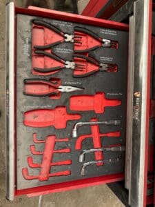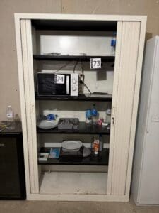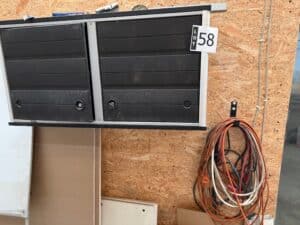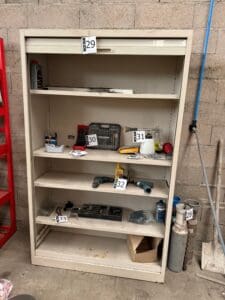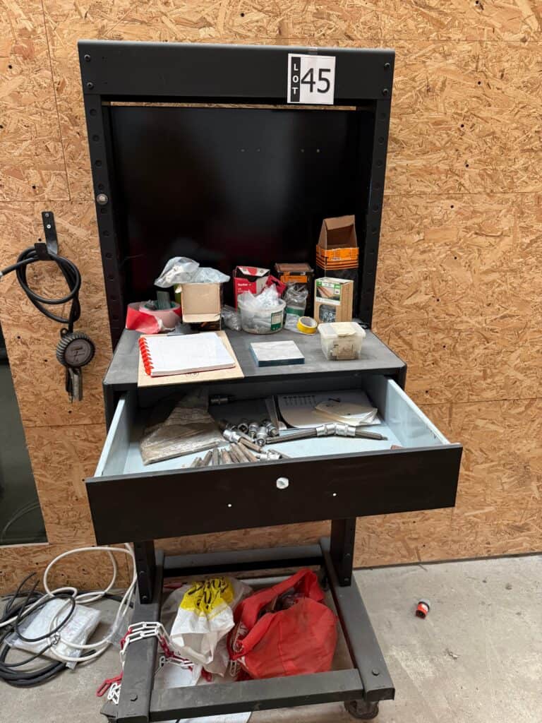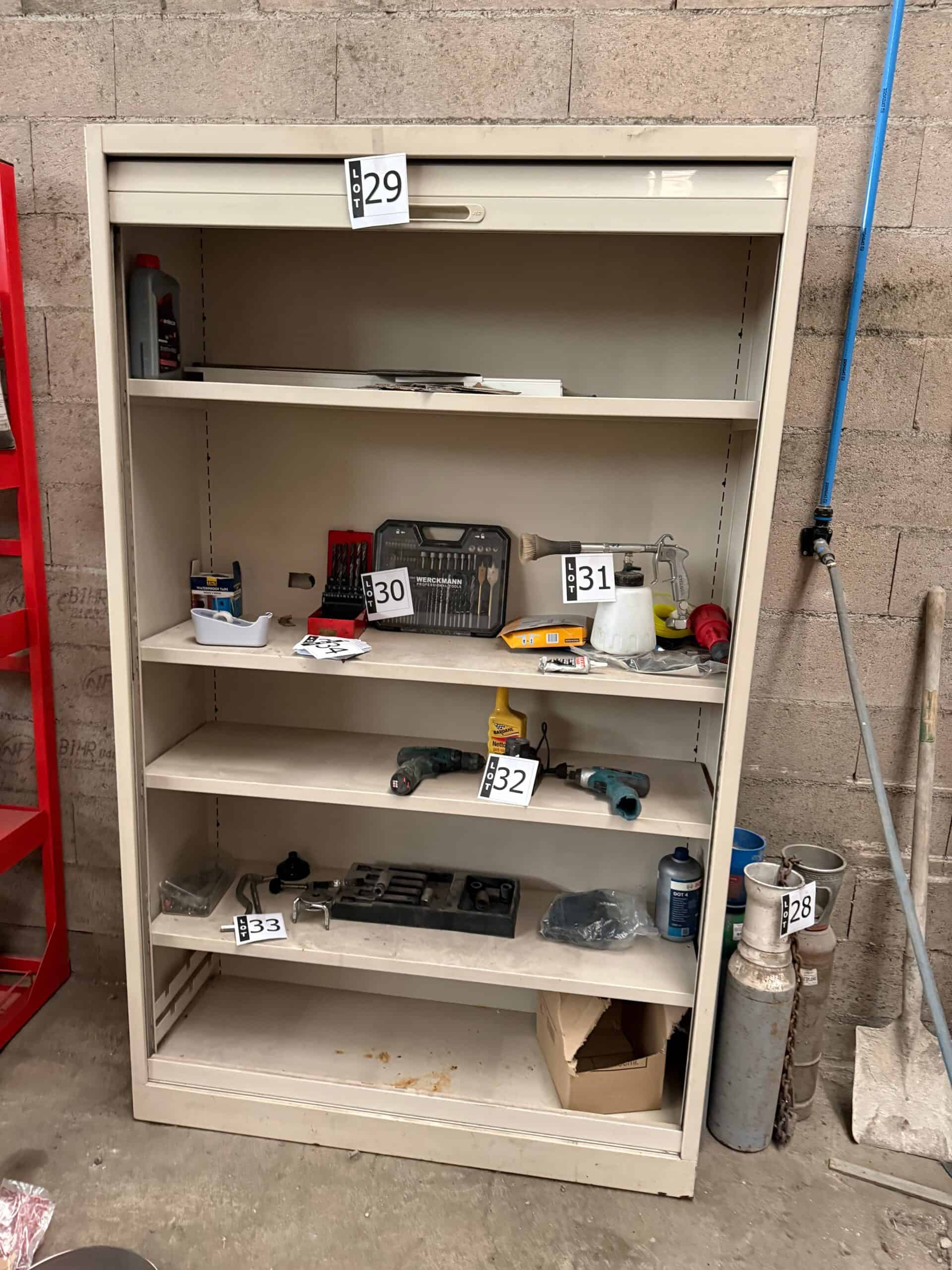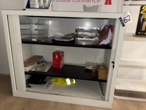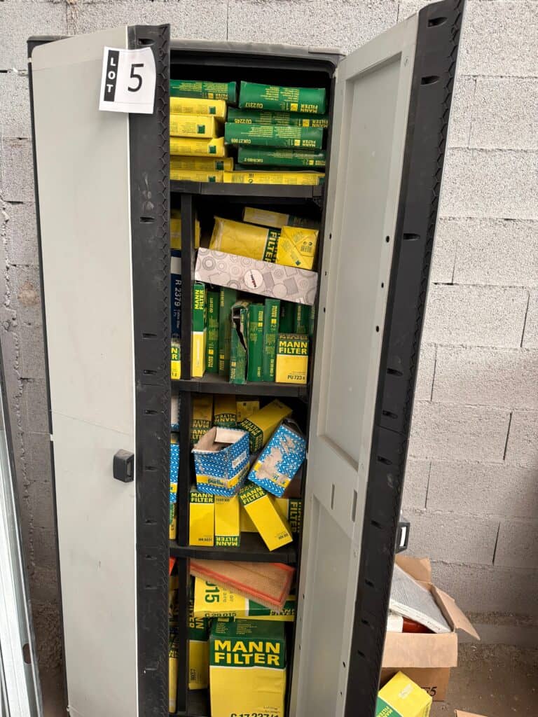 Armoire PVC contenant à l'intérieur quelques filtres à air, filtres à gasoil, filtres à essence et filtres à huile