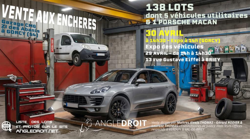 Exposition des véhicules uniquement le 29 avril de 14h à 14h30 > 13 rue Gustave Eiffel à VAL DE BRIEY / Véhicules vendus sur désignation le 30 avril à GORCY