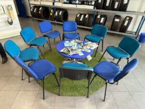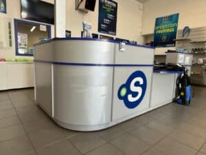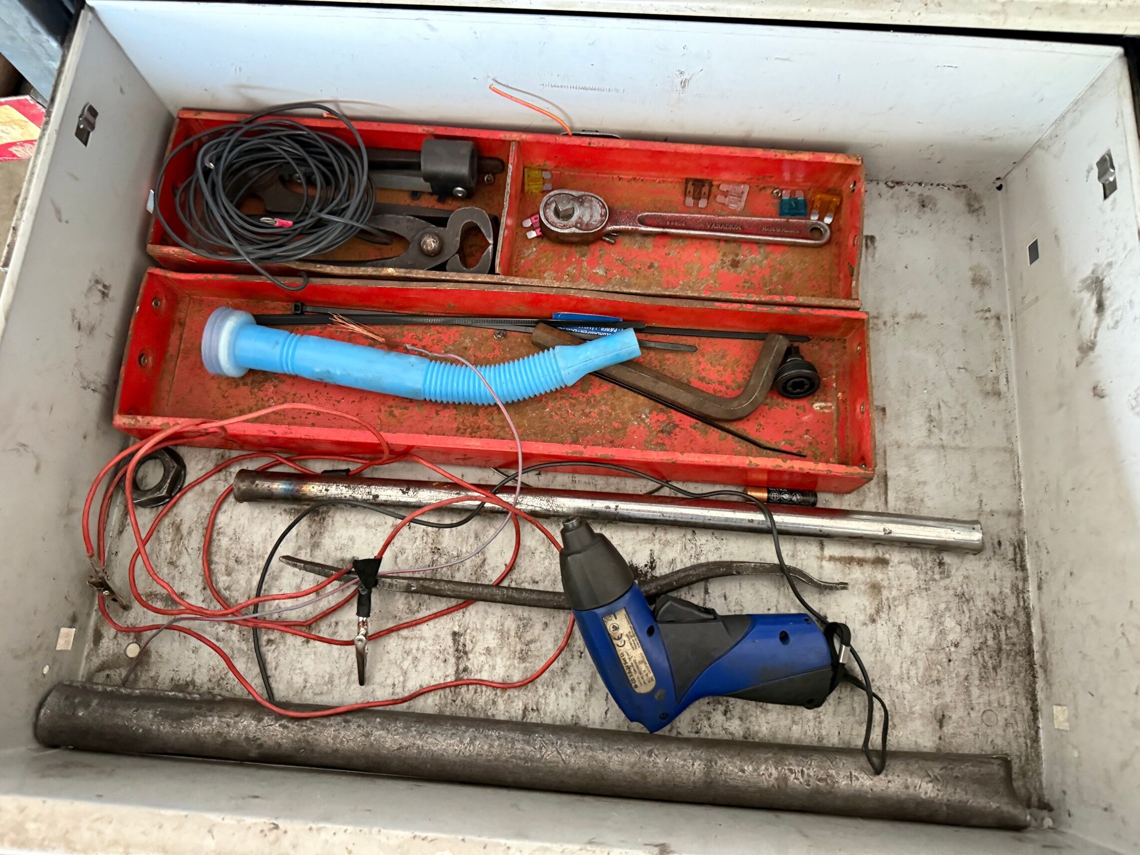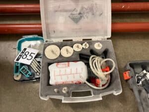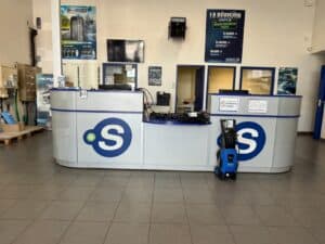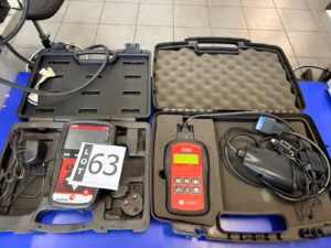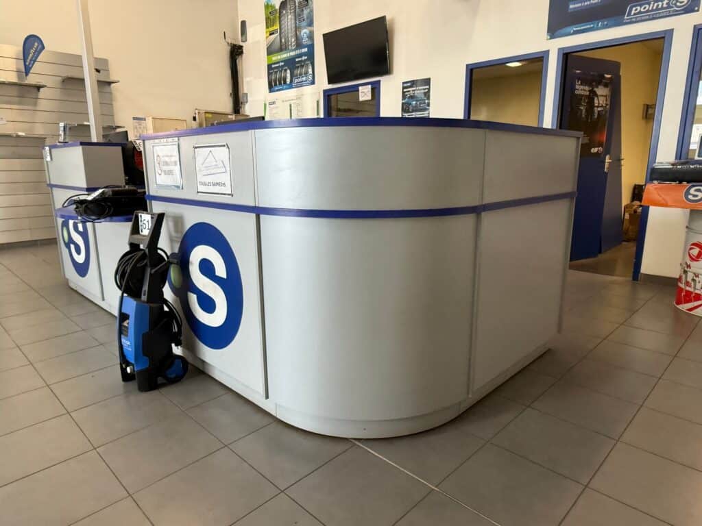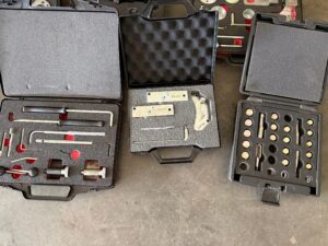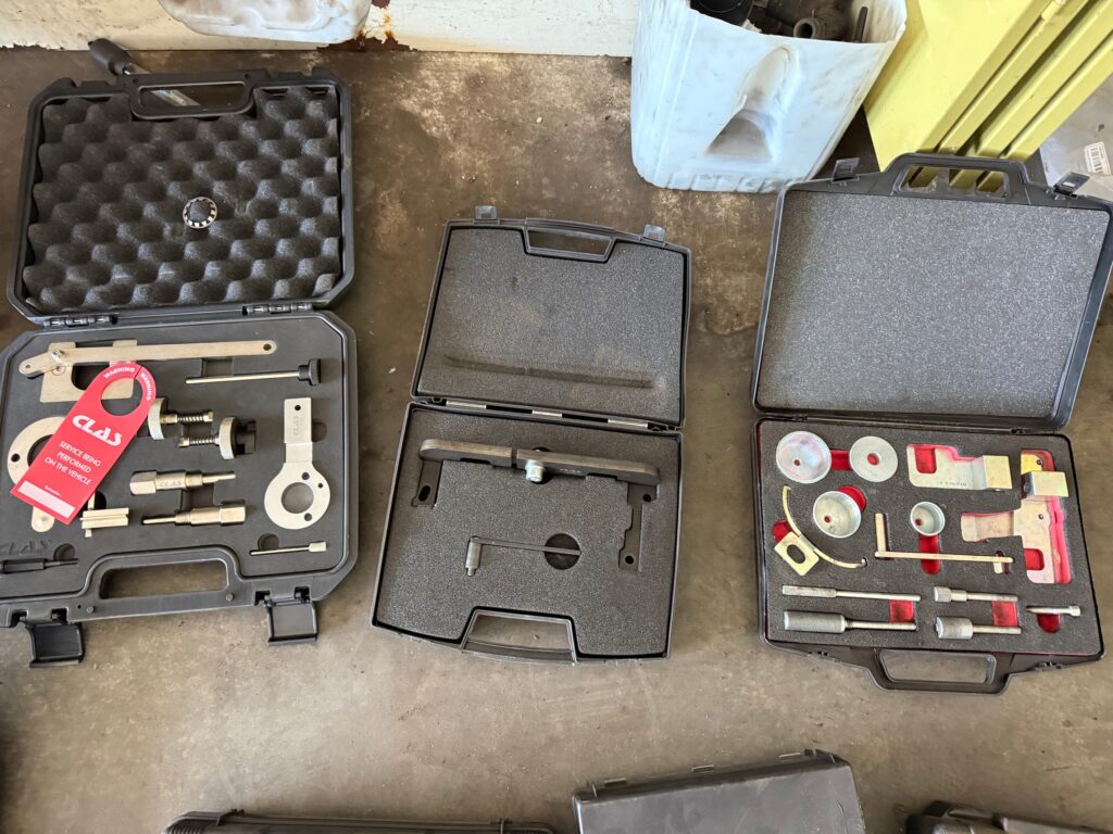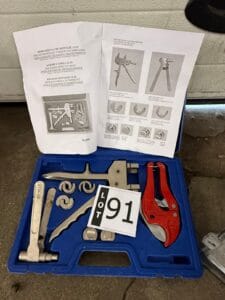 Lot de matériel d’immatriculation comprenant plaques minéralogiques neuves, supports, caractères/lettres et machine manuelle de sertissage/emboutissage de plaques de marque SAMART, avec accessoires