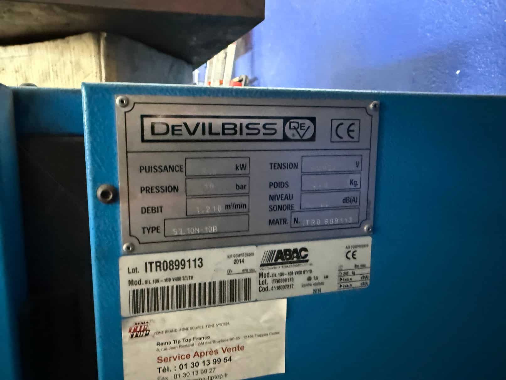 1 Compresseur de marque DEVILBISS SILINE SILENT HP10 avec cuve et Sécheur d'air de marque ABAC DRY60