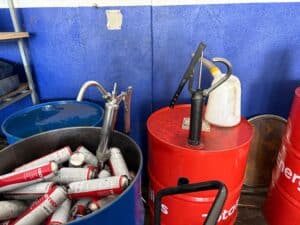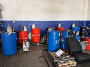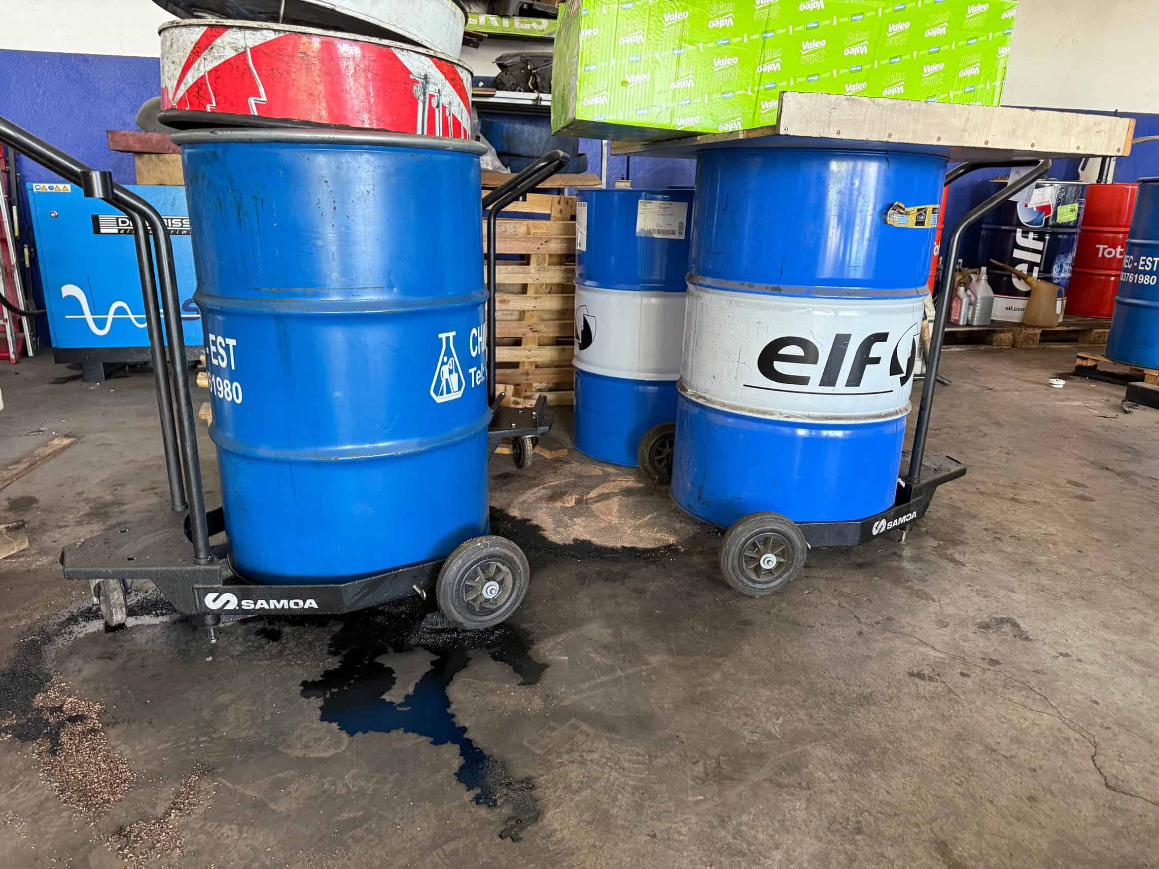 Lot de restants de fûts d'huile : Fond d'huile ELF OW 30 ≃ 30 litres - OW 20 RENAULT ≃ 180 litres / 2 Fûts vides 200 litres / 1 Fût vide 100 litres / Fût d'huile TOTAL ENERGIE OW20 LLX ≃ 100 litres + 1 Fût ELF 5 W30 LLX ≃ 20 litres + Fût d'huile ELF 5W30 FULLTECH RENAULT ≃ 180 litres / Fût d'huile 5W20 FORD TOTAL ENERGIE ≃ 50 litres / Fût d'huile 10W40 ≃ 30 litres / Fût d'huile boîte de vitesse 75W80 TOTAL ENERGIE ≃ 30 litres / Fût d'huile ELF 75W90 ≃ 50 litres /