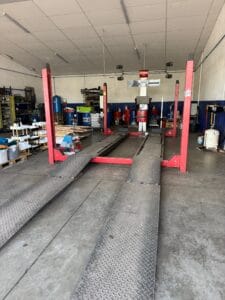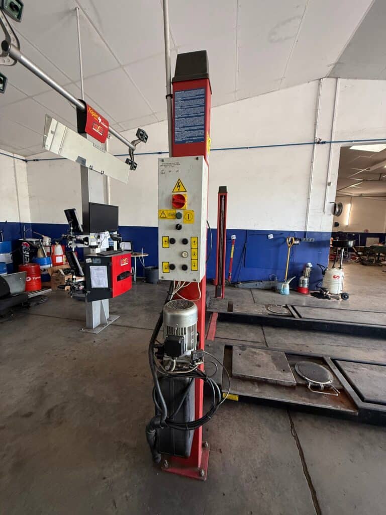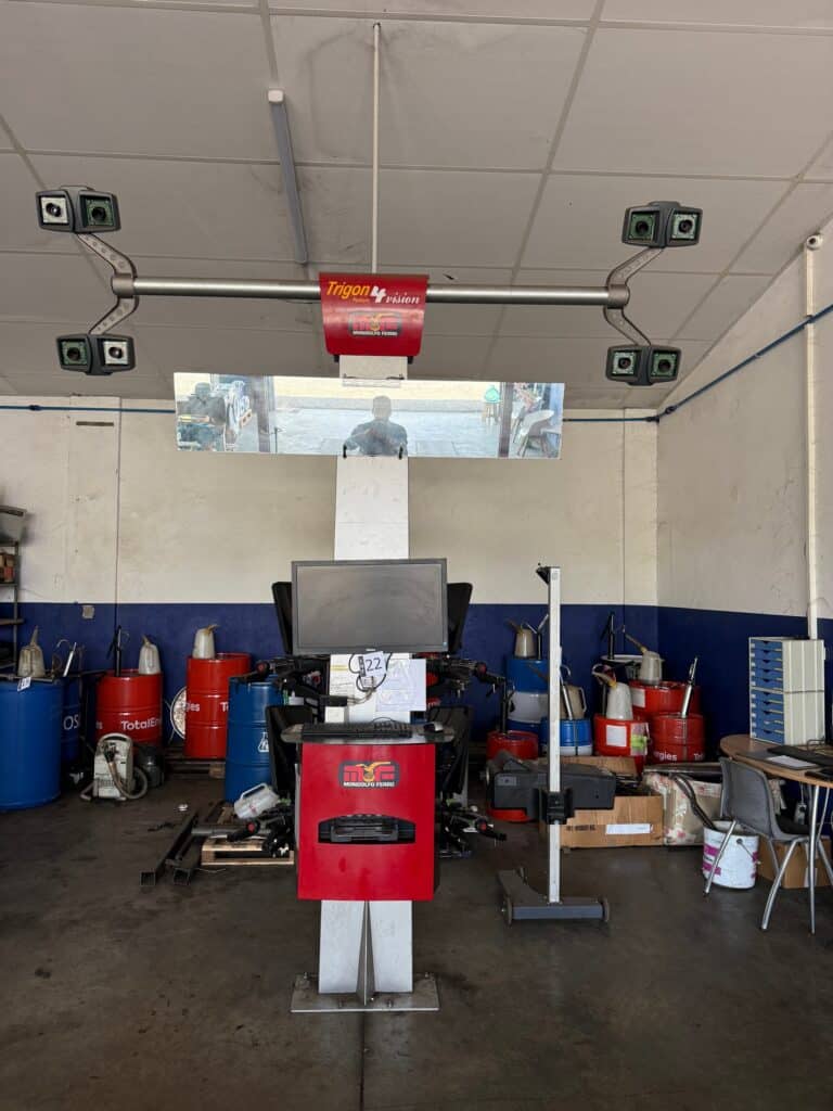 1 Appareil de contrôle et réglage de géométrie / parallélisme 4 têtes, de marque MONDOLFO FERRO, modèle TRIGON 4, avec unité centrale, écran, clavier et souris