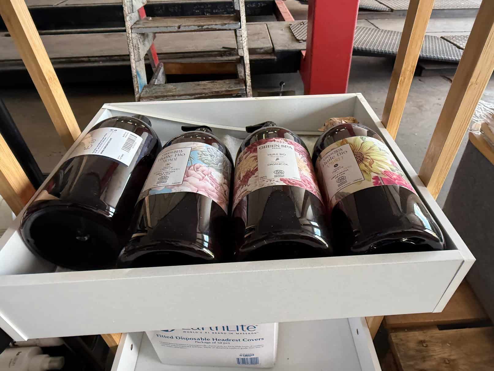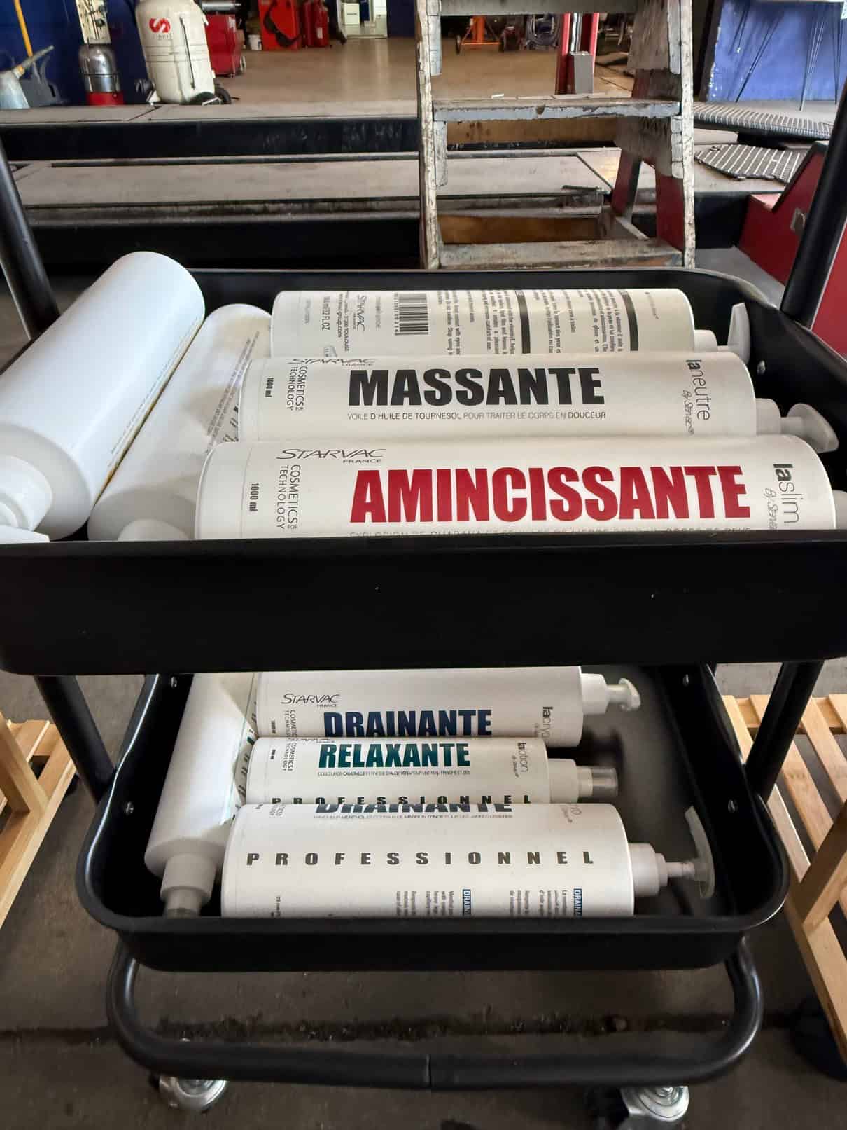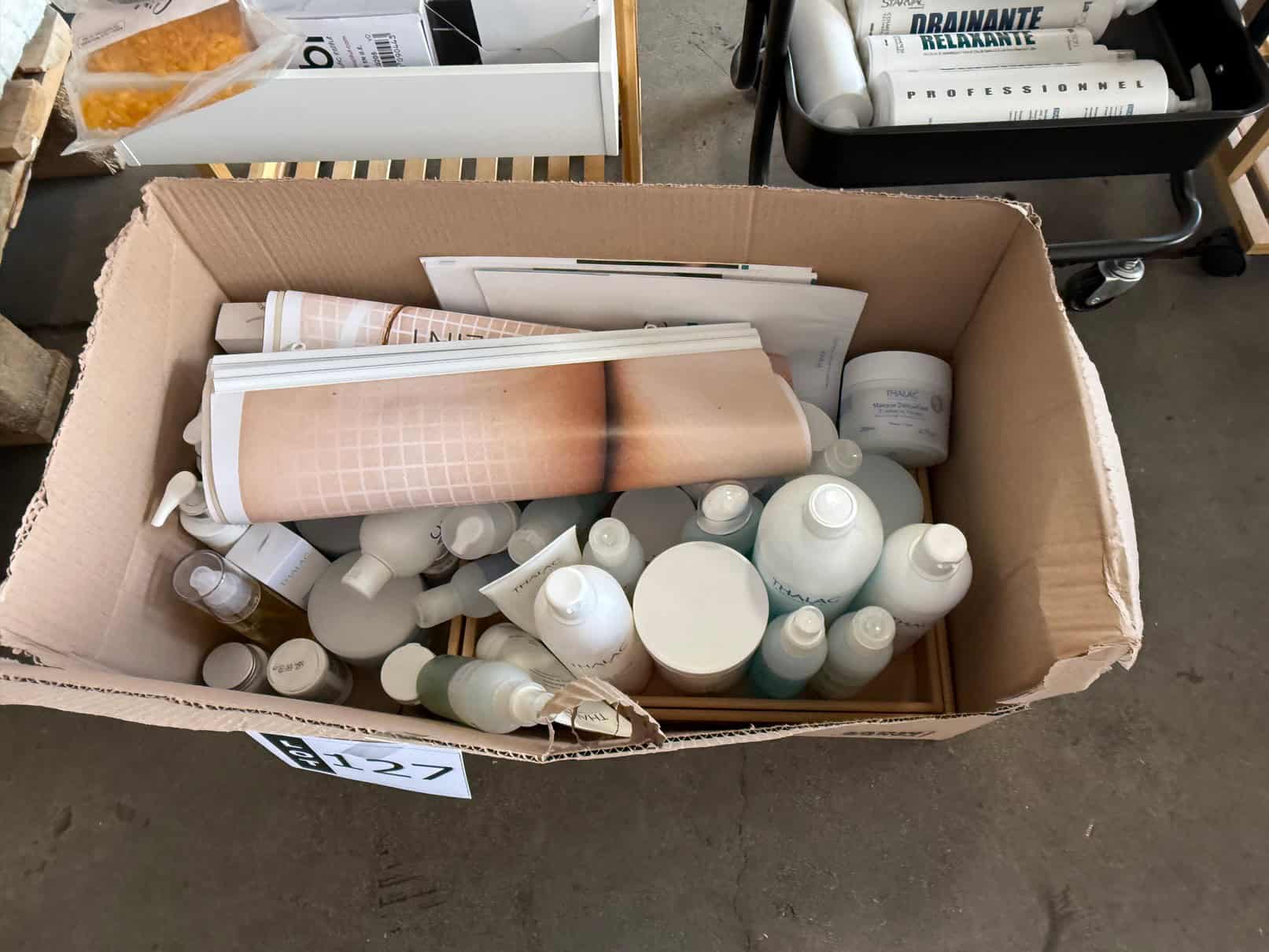 Cartons de bidons de produits de soins (lotions, huiles, compléments alimentaires, masques, émulsions, etc)