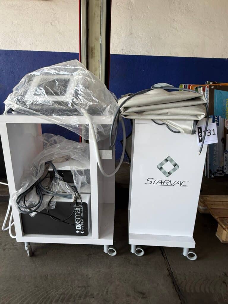 1 Appareil de soins esthétiques (soins de stimulation tissulaire, drainage, modelage et protocoles corporels selon les accessoires et programmes embarqués.) de marque STARVAC, modèle DXSMART 230VAC/50-60Hz, avec accessoires et consommables associés (en très bon état)