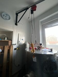 Système de lavage CIP avec Résistance chauffante, 3 X 100 litres, en très bon état avec deux bidon de produit ALCAMIX et DELAL 22