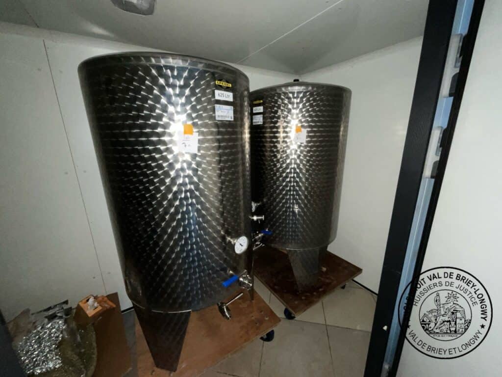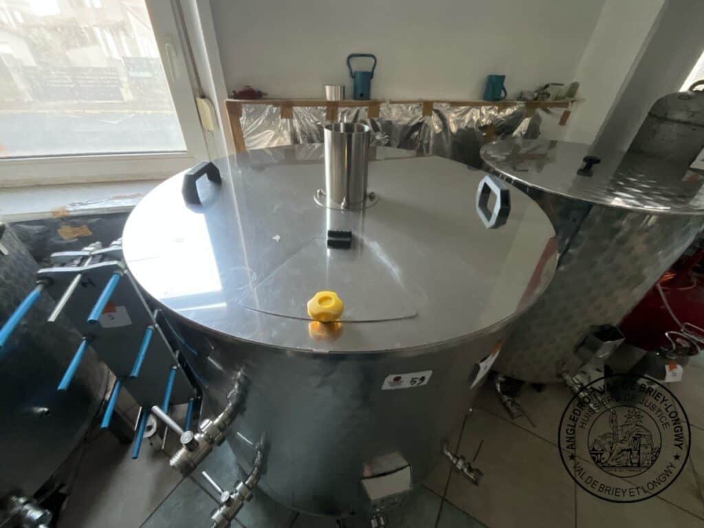 Cuve en inox de fermentation SPEIDEL, 625 litres, avec ses accessoires (vanne papillon avec boule de lavage), en très bon état.
