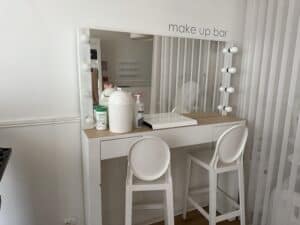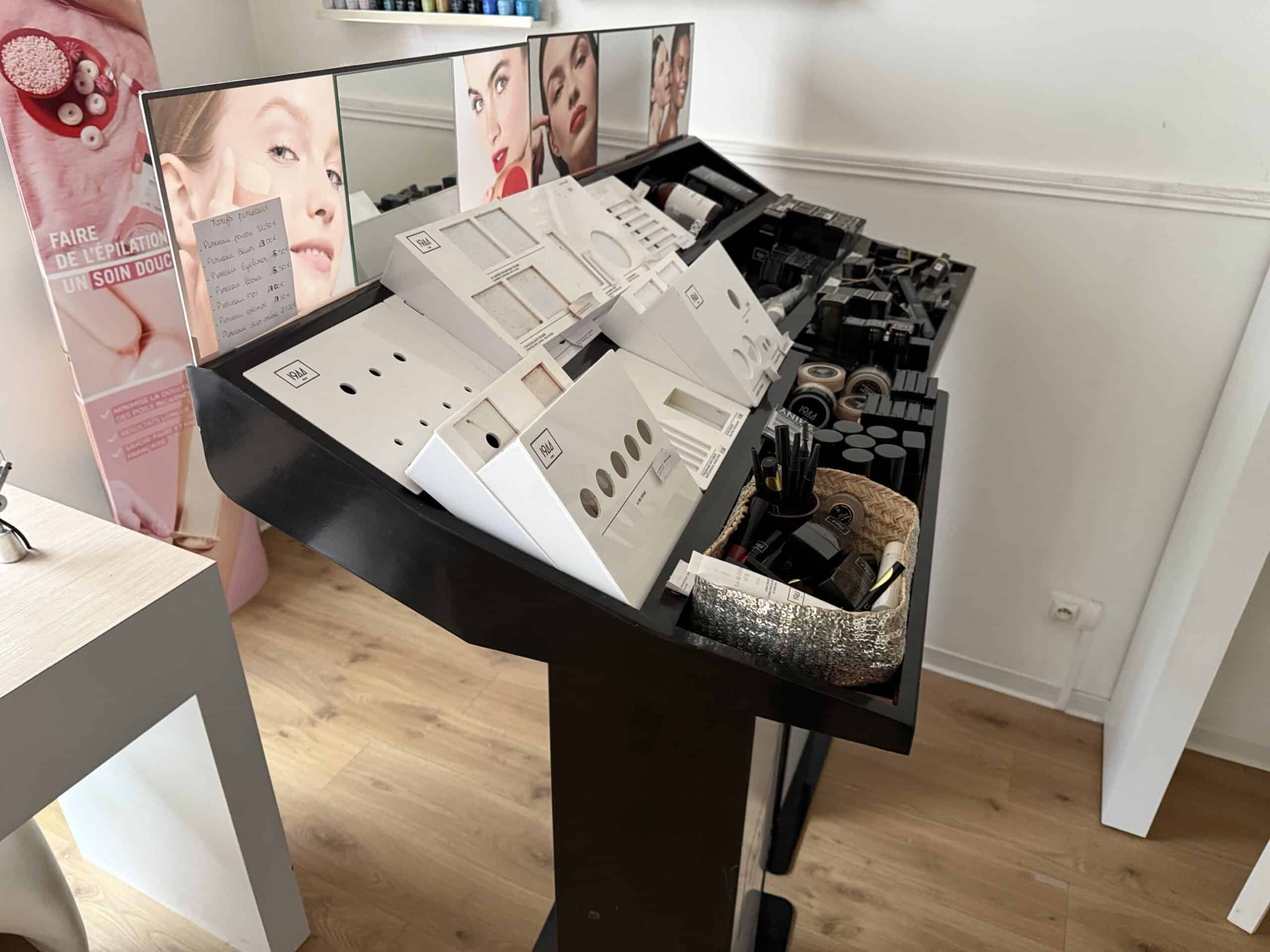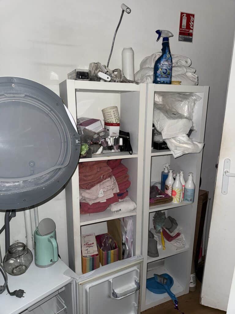 1 Extincteur 1 Porte-parapluie 2 Tabourets 1 Petite console 2 Chaises hautes blanches 1 Coiffeuse/console maquillage bois 1 Petit meuble rangement cylindrique 1 Ensemble petite console avec 2 fauteuils 1 Meuble présentoir 1 Meuble étagère en bois 2 Ensembles meuble, lavabo et robinet mitigeur