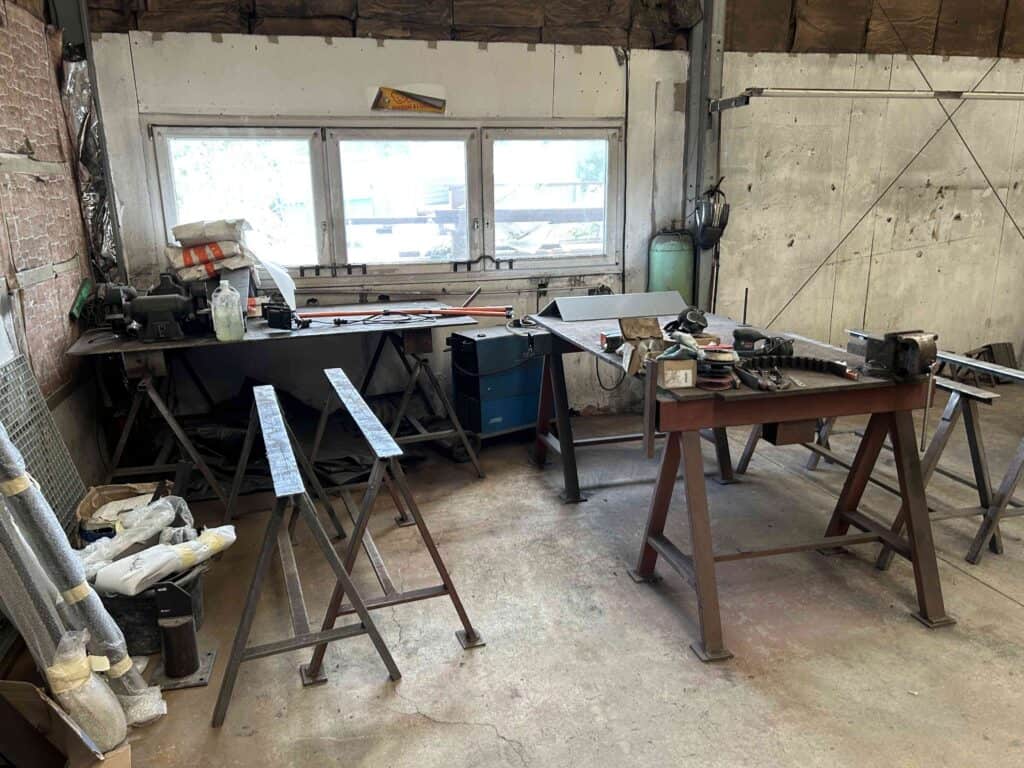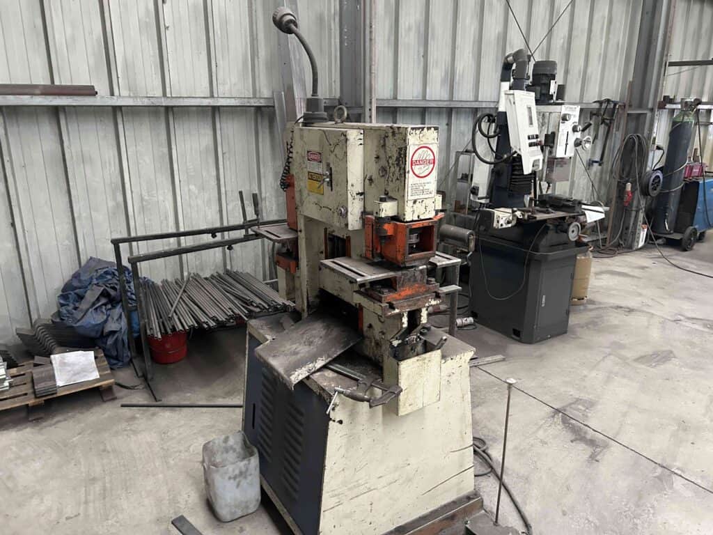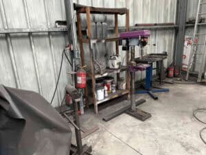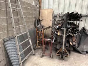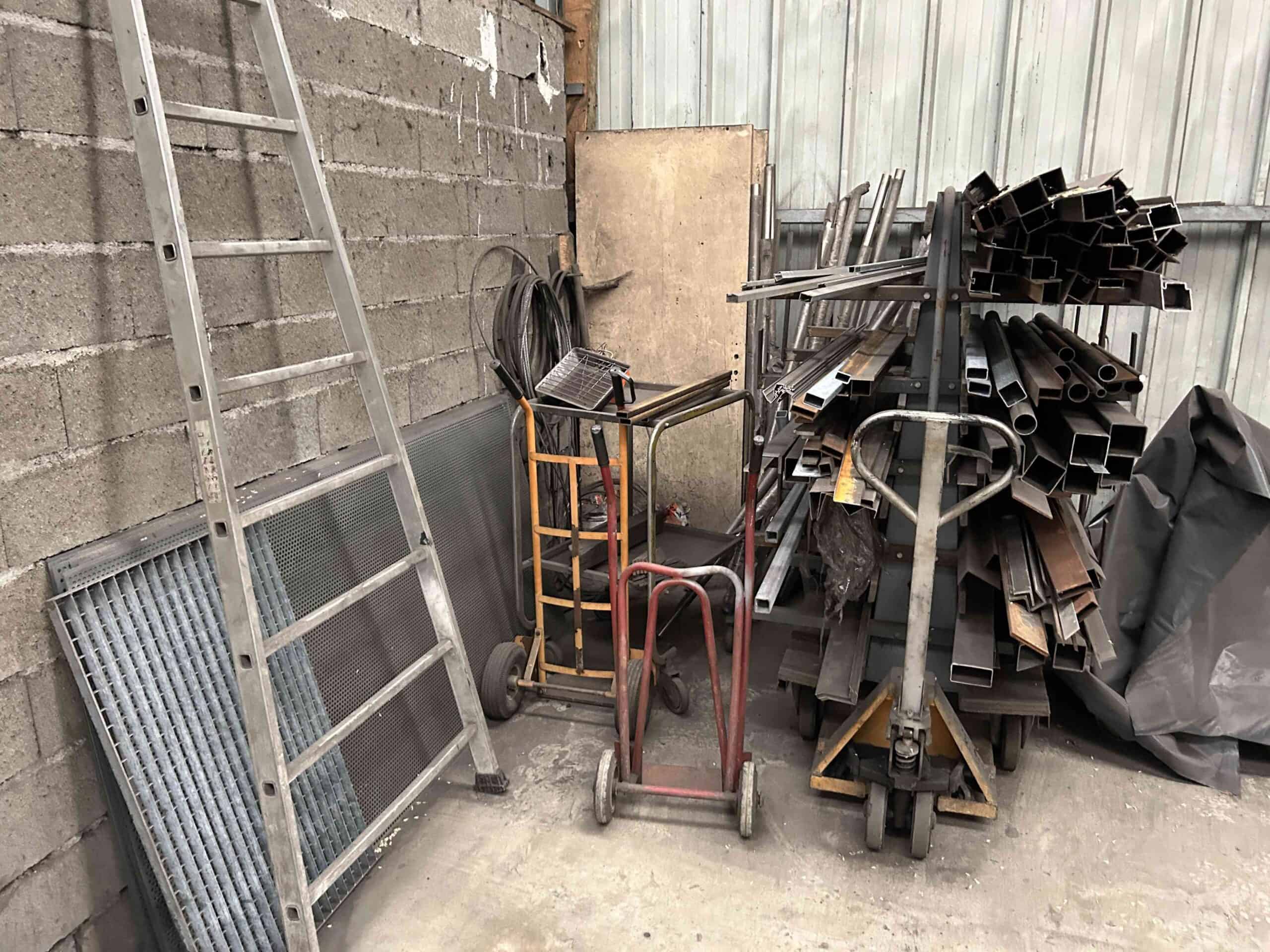 TABLES D'ASSEMBLAGES / LOT D'ECHELLES / TRANSPALETTES / OUTILLAGE ELECTROPORTATIF / POSTE A SOUDER / SCIES RUBAN SIDAMO ET PROMAC / POINCONNEUSE CISAILLE SUNRISE