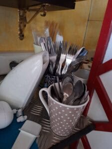 Couverts en inox - tasses - sous tasses - verres