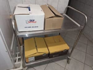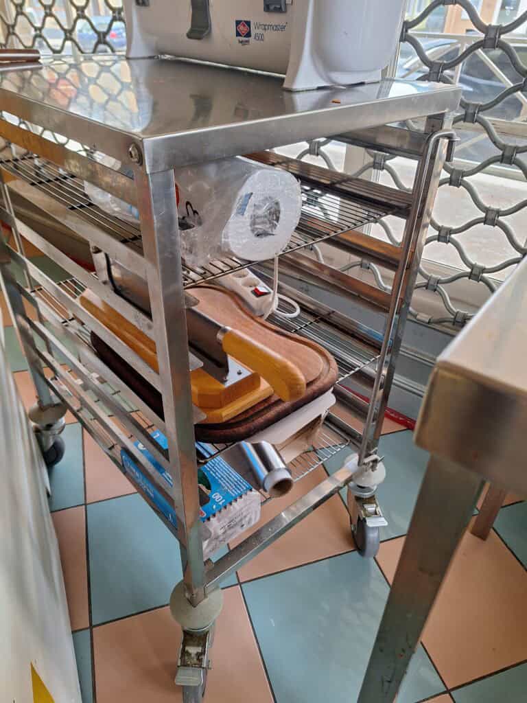Chariot en inox sur roulettes