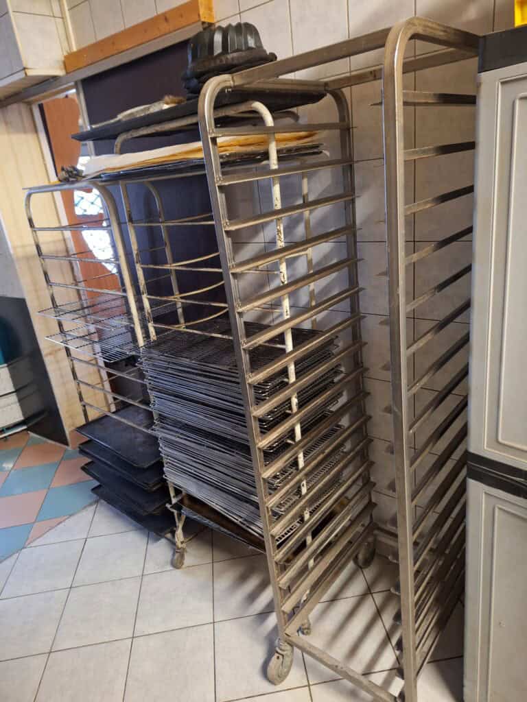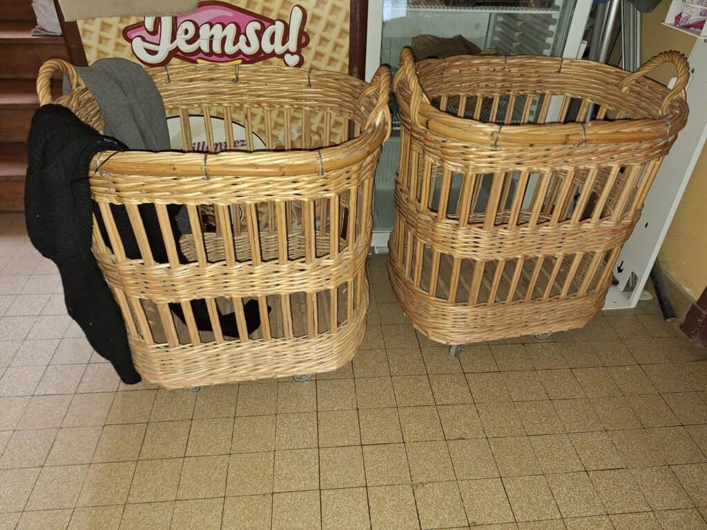 Chariots à pain sur roulettes et corbeilles à pain