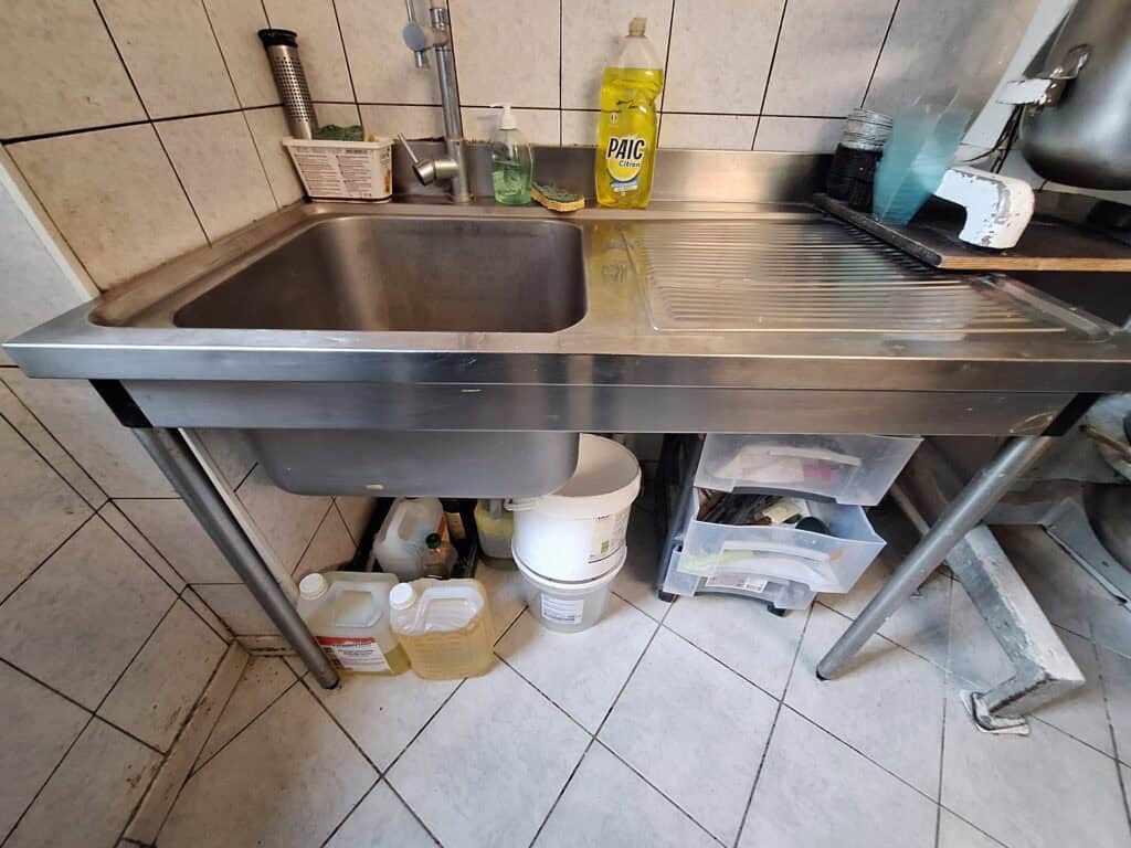 Plonge en inox sur pied avec un bac et partie égouttoir