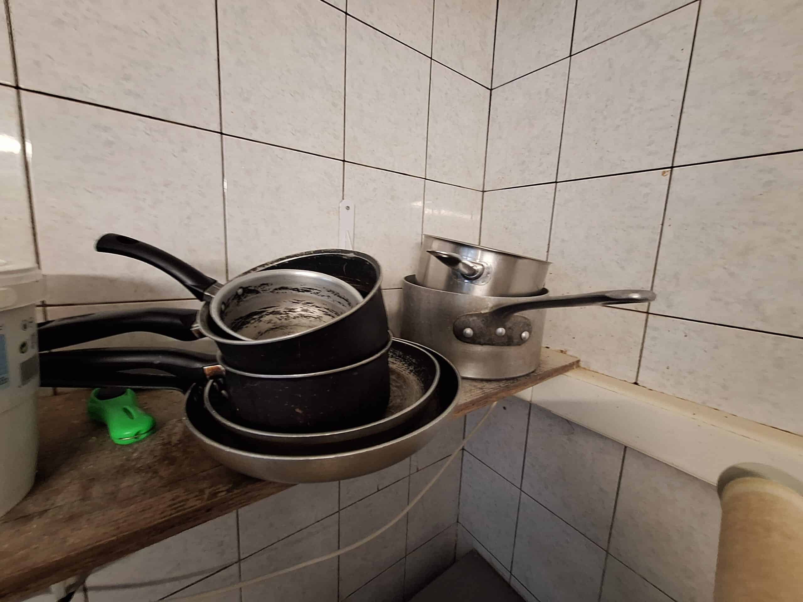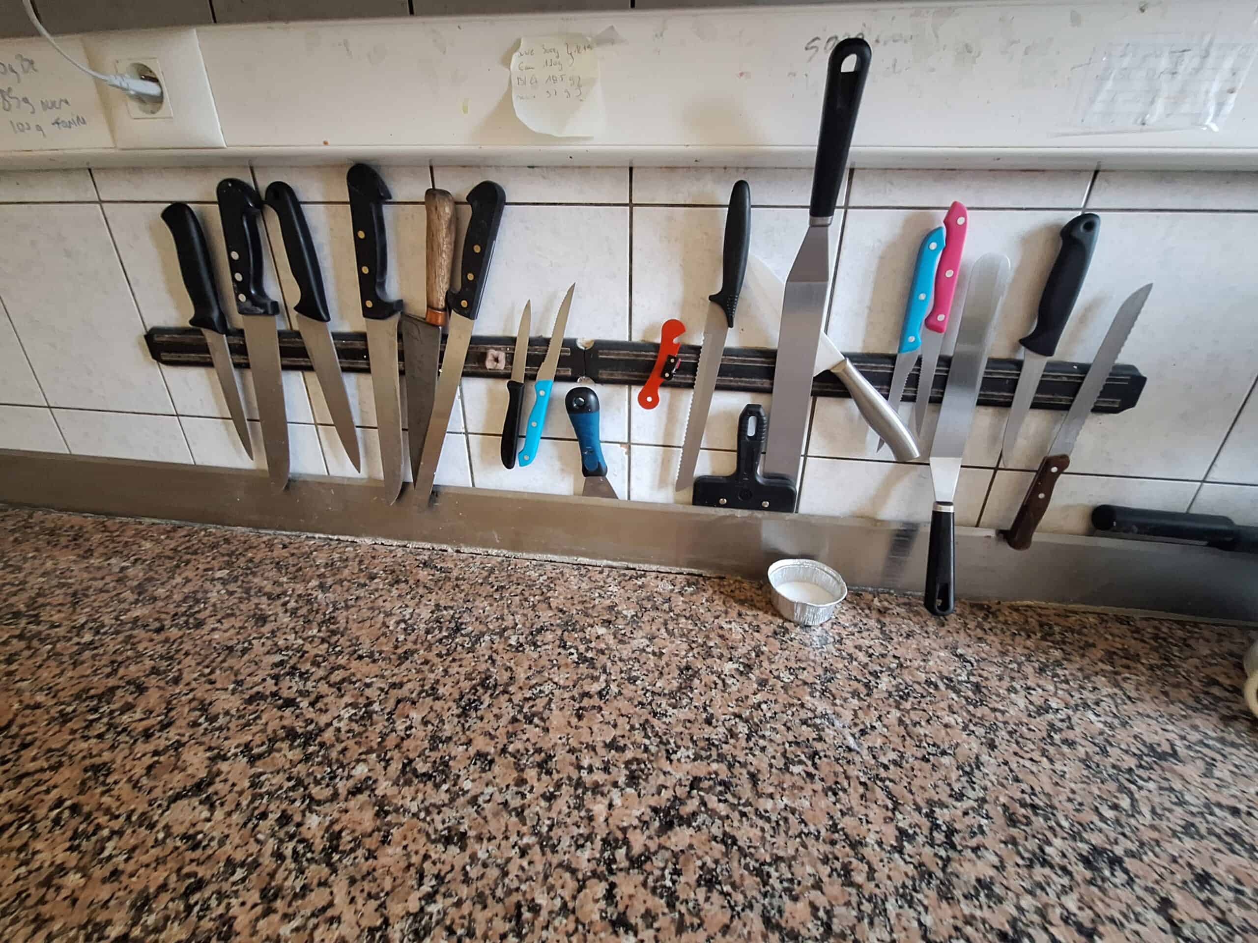 Lot de couteaux + planche à découper en bois + spatule + casseroles en inox + moules divers